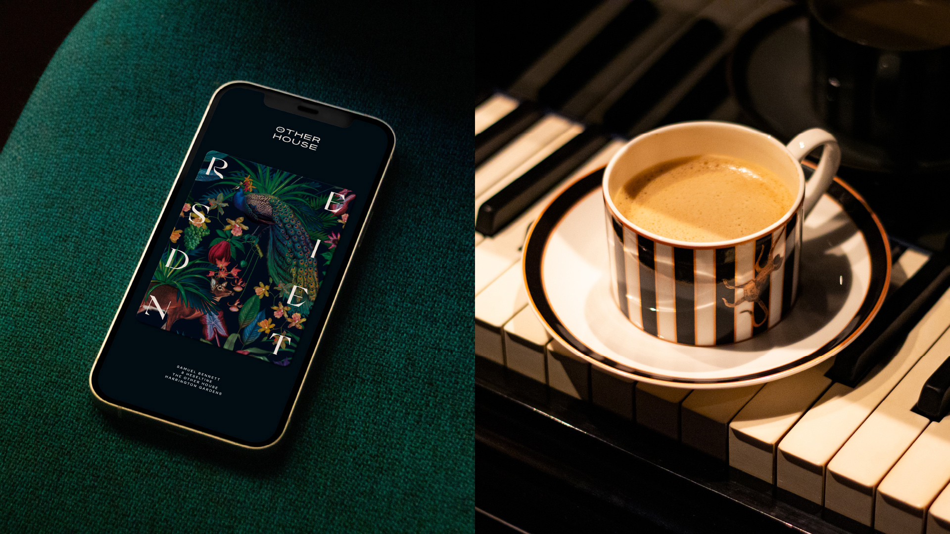 The Other House的视觉识别设计完美体现了其“平衡传统与非常规”的品牌精神。视觉系统结合了自信大胆的排版、温馨亲密的摄影以及带有经典装饰的现代图标。更为突出的是,品牌与插画师Mariana Rodrigues合作,创作了极具视觉冲击力的沉浸式壁纸。这些极繁主义设计描绘了英国与异域动物、植物的交织景象,在每一个物理和数字触点营造出独特的深度感和探索感。